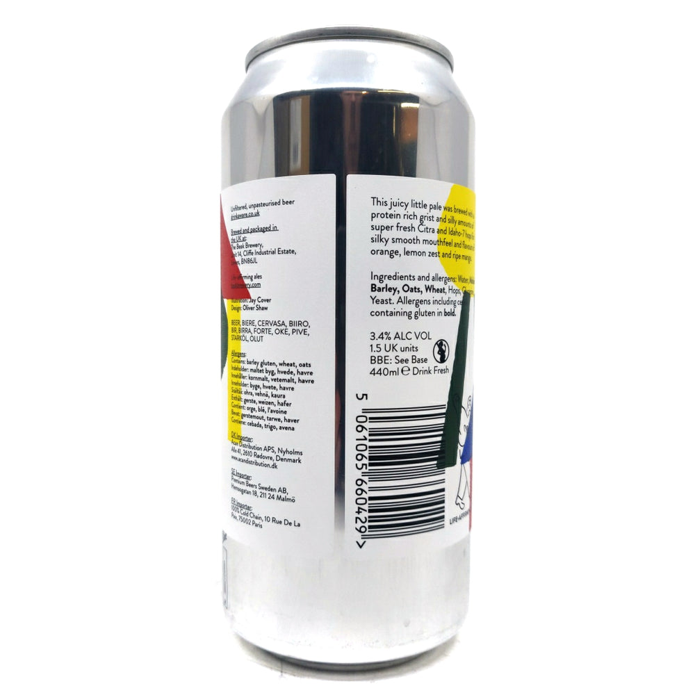 This juicy small pale was brewed with a protein-rich grist and lashings of of super-fresh Citra and Idaho-7 hops for a silky smooth mouthfeel and flavours of orange, lemon zest and ripe mango.