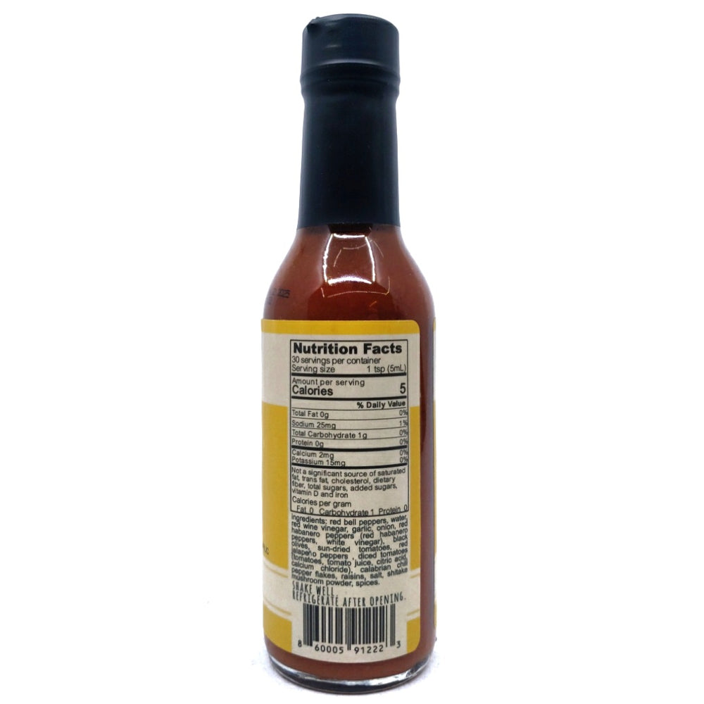 AS SEEN ON HOT ONES SEASON 17! Calabria is the "toe" of Italy's boot and this sauce showcases ingredients from this sun-drenched landscape with Calabrian chillis, sun-dried tomatoes, olives, garlic, mushrooms, thyme and basil. Amazing on pizza, pasta, grilled meats and vegetables.