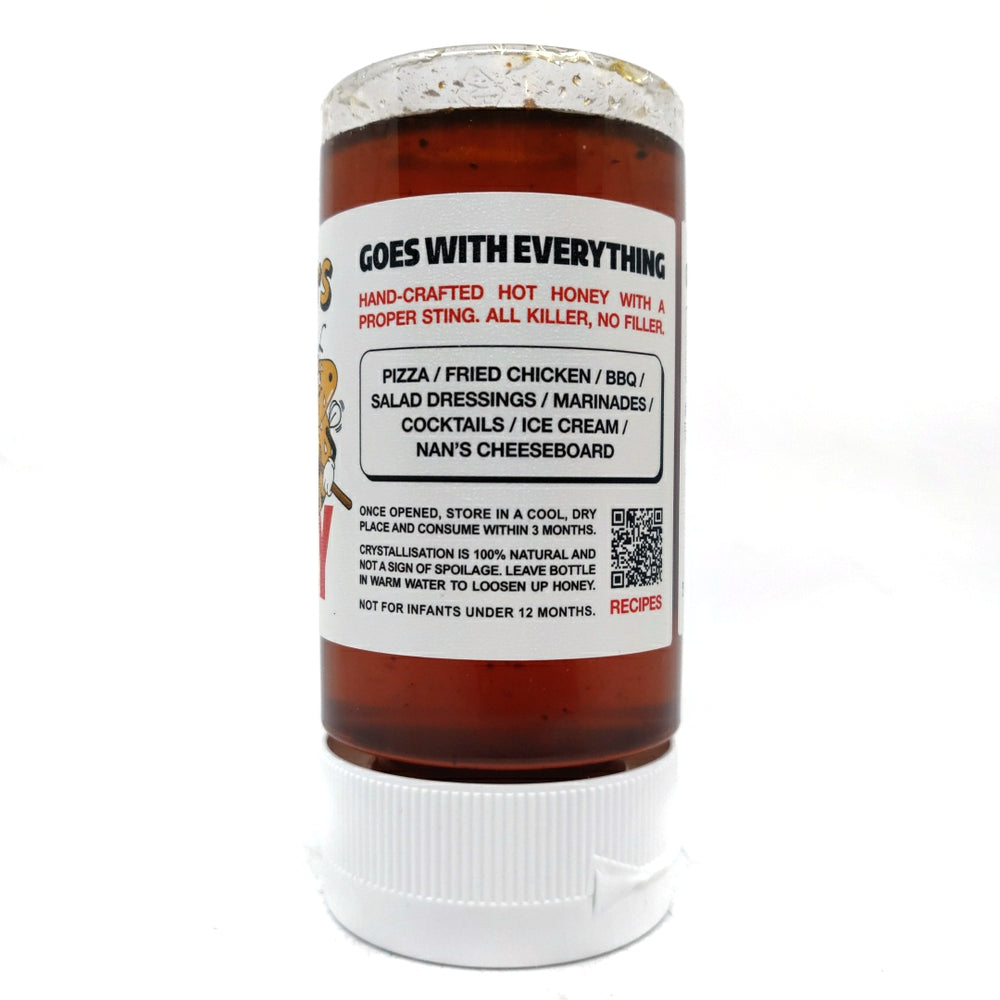 This "no bulls**t" hot honey is fast becoming a local legend - no chilli extracts, no added sugar, no stabilisers or thickeners.